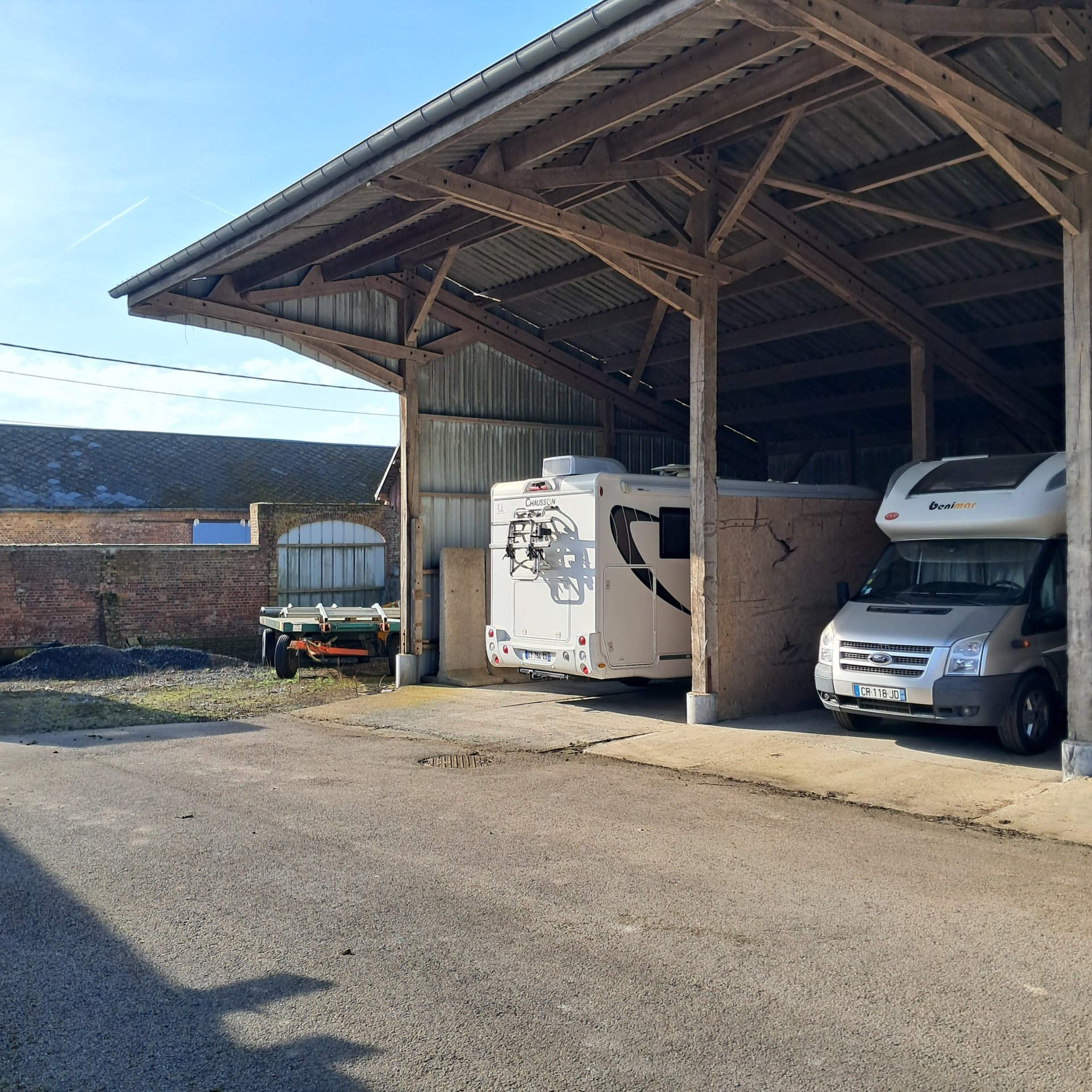 Candice Thorel Immobilier 06.46.01.46.59 vous propose à la vente, ce lot de deux emplacements couverts dans un corps de ferme cloturé. Idéal création de garage ou hivernage camping car. Charpente et couverture en bon état. Contact visites 06.46.01.46.59